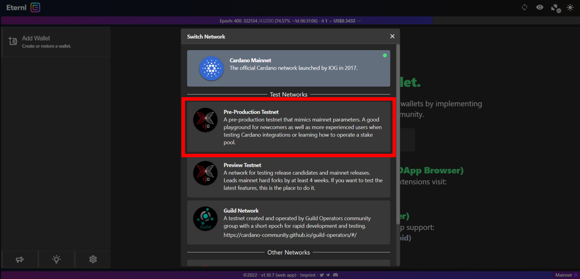 # Set up your wallet on Pre-Prod Environment (ETERNL)
