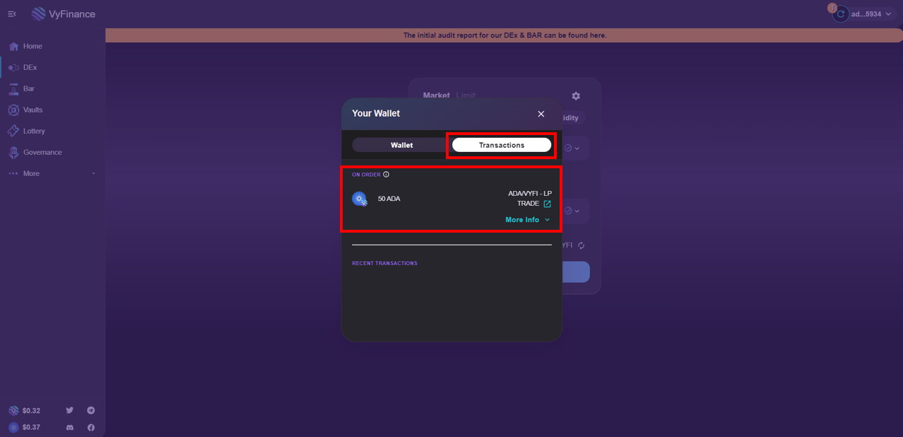 Here you can view your "On Order" transactions as well as your "Recent Transactions"&#x20;