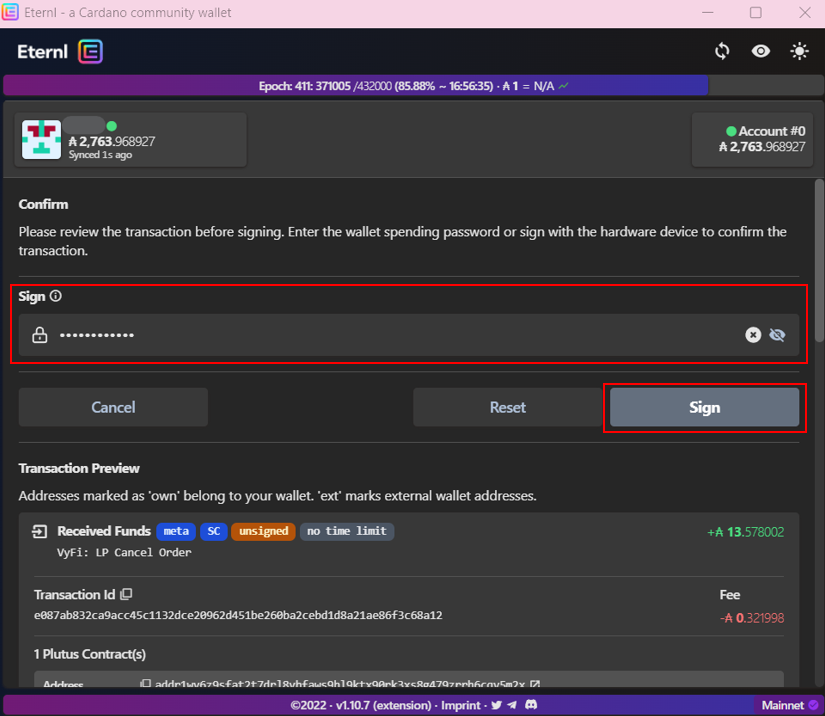 * Enter your spending password&#x20;