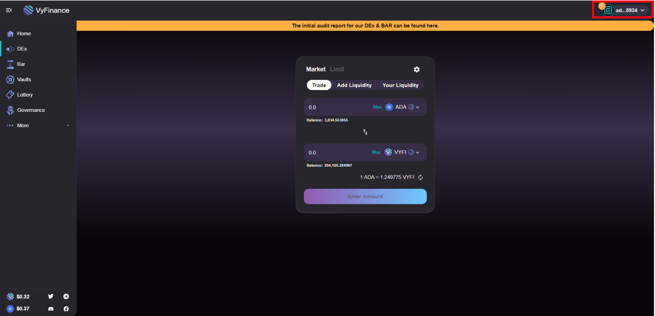 * Select your wallet in the top right hand corner of the page&#x20;