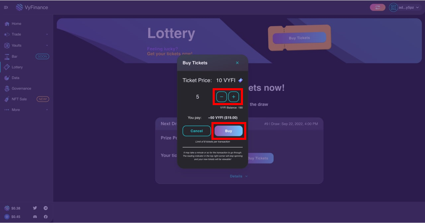 &#x20;              **Congratulations you have now successfully bought yout VyFinance lottery tickets** &#x20;